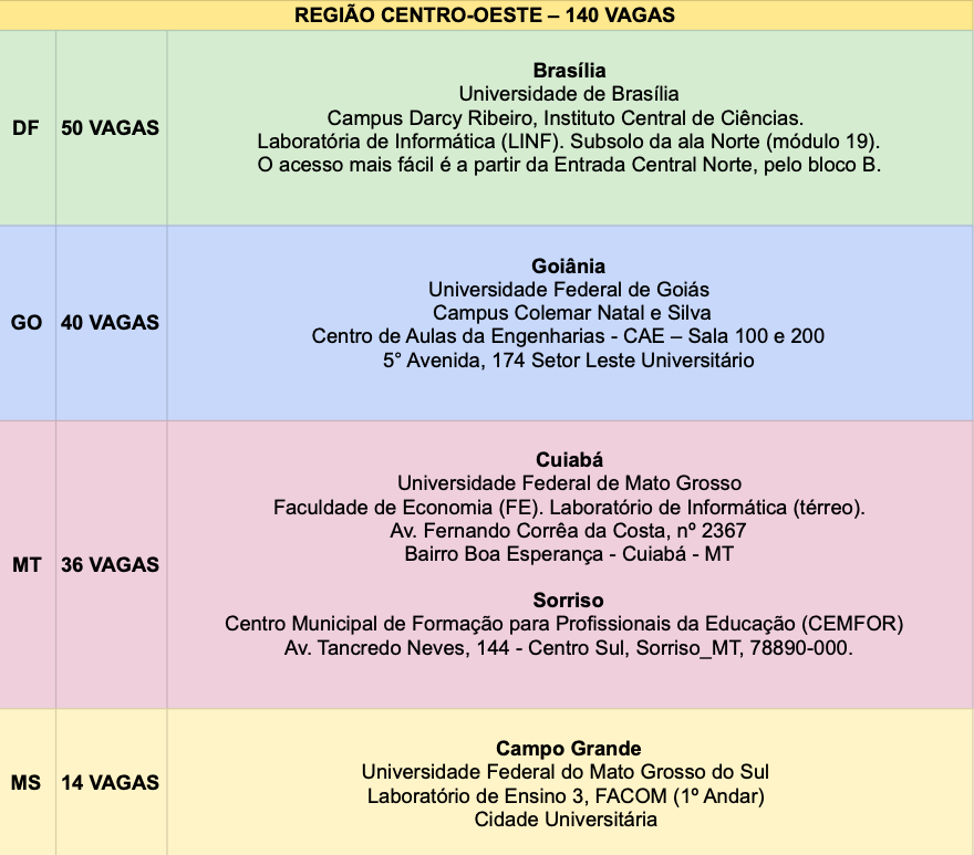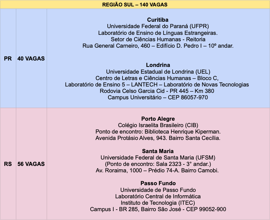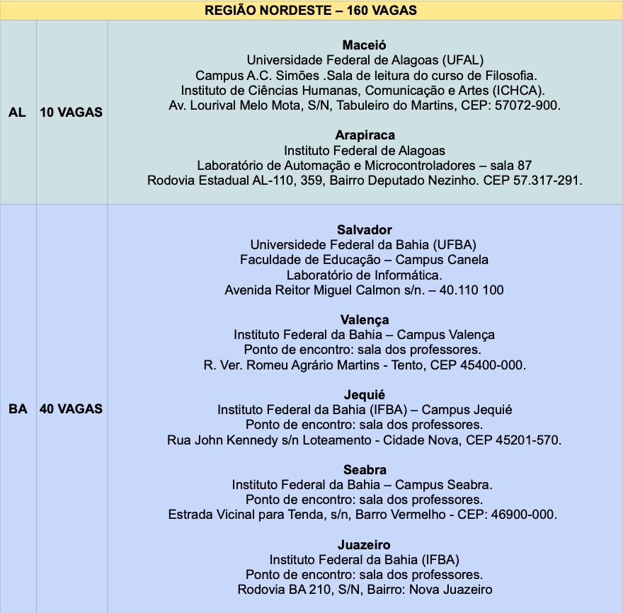1.2. Uma Etapa Regional, a ser realizada entre as 14h e as 18h (Horário de Brasília) do dia 06 de junho em locais de prova distribuídos entre todas as unidades da Federação;