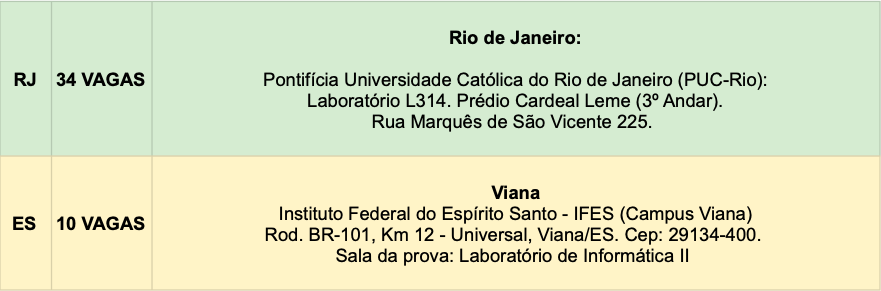 10. Vagas e locais de Prova da Etapa Regional
