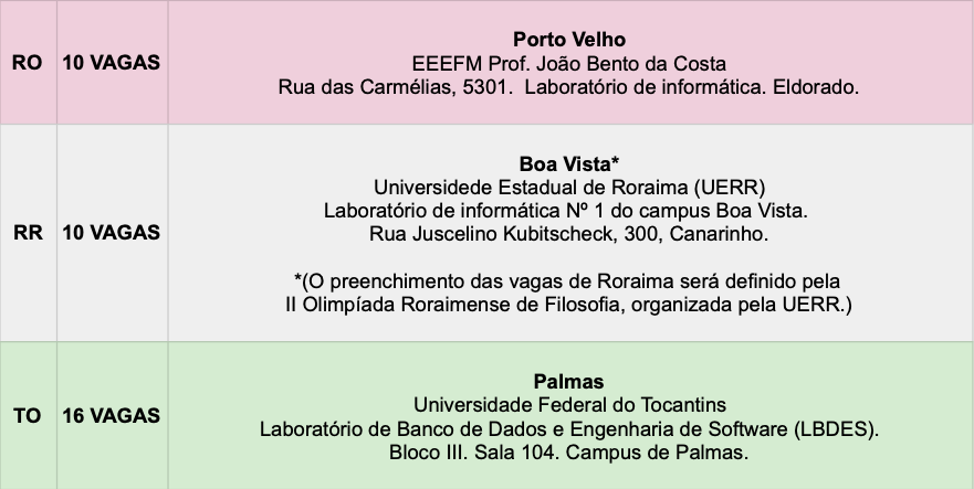 - 11.23. Roraima – Definido pela II Olimpíada Roraimense de Filosofia