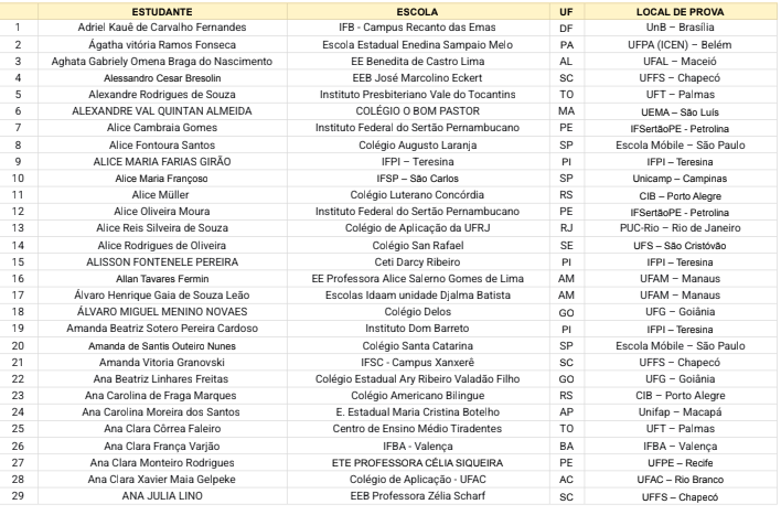 Confira abaixo a lista de estudantes inscritos na Etapa Regional da II Onfil e seus respectivos locais de prova.*