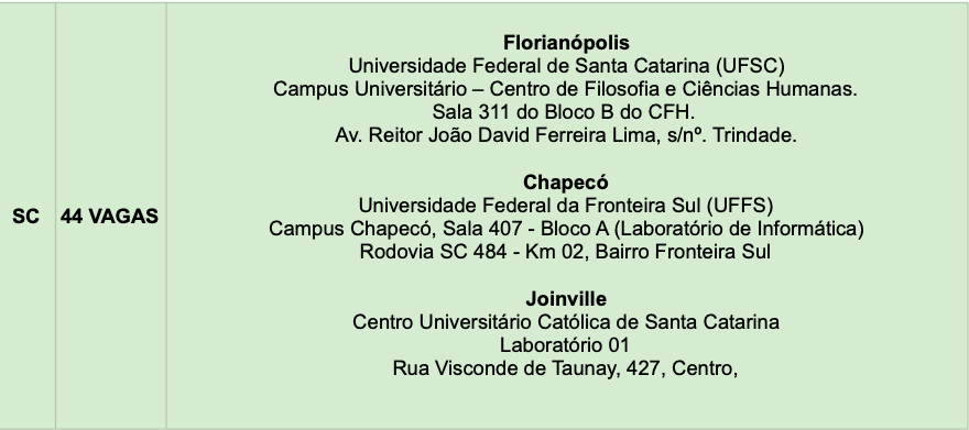 ** Lembramos também que os endereços completos dos locais de prova mencionados na lista de inscritos estão disponibilizados na seção 10 do edital.